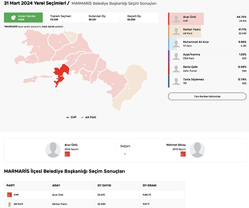 Acar Ünlü'nün 24.415 (%44.75) oyu karşısında belediye başkanlığı hedefine ikinci kez ulaşamadı.