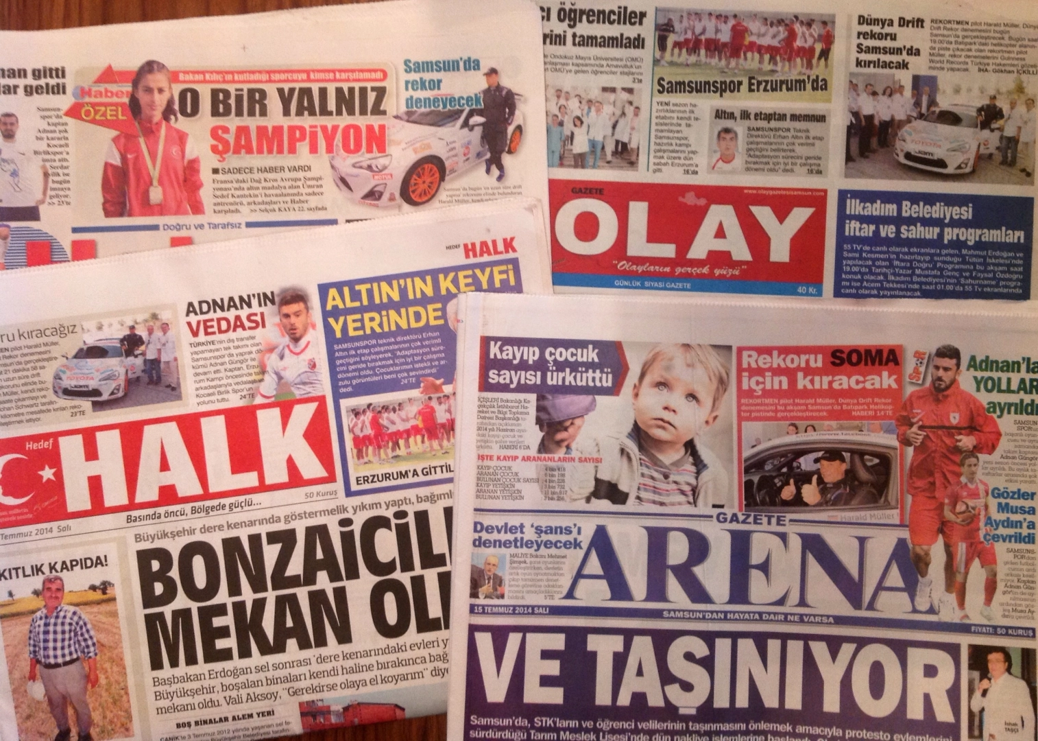 Samsun'da bu akşam (salı) saat 19'da Batıpark'ta başlayacak olan programla Dünya Drift Rekoru'nu kırmak üzere Toyota'sının başına geçecek olan Alman rekortmen Harald Müller'in bu rekor girişimi Samsun yerel medyası tarafından da yakından takip ediliyor. Samsun'da yayınlanan günlük gazetelerin nerdeyse tamamı, haberi ilk sayfalarında ve sürmanşetten anonslarken, spor sayfalarında da geniş haberlerini renkli fotoğraflarla süslediler. Samsun'un günlük gazetelerinden Halk "Rekoru kıracağız" başlığnı atarken, Haber gazetesi yine sürmanşetteki anonsunda "Samsun'da rekor deneyecek" başlığını attı. Olay'ın ana sayfadaki anonsunda "Dünya drift Rekoru Samsun'da kırılacak" başlığını kullanırken, Gazete Arena'nın başlığı "Rekoru Soma için kıracak" oldu. Ekip gazetesi "Rekor Samsun'da kırılacak" başlığı altında ve arka kapak içinde üçte bir sayfa ayırırken, Gazete Gerçek de yine iç spor sayfasında üçte ikilik kısmını kapsayan haberini "Drift günü" başlığı işe duyurdu. Aydın Hoşgör | Ralli Ajansı
