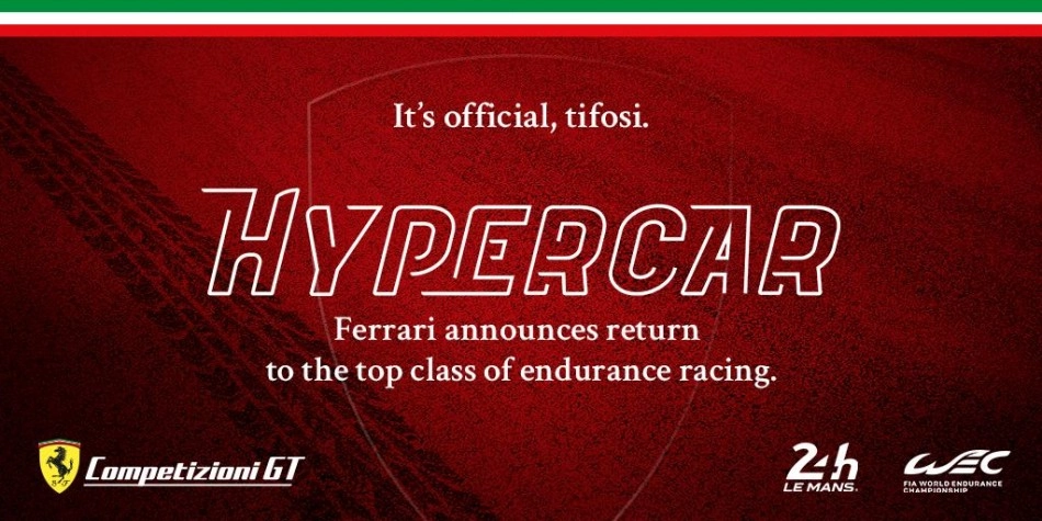 Ferrari, 2023'ten itibaren FIA Dünya Dayanıklılık Şampiyonası'nın yeni Hiper otomobil kategorisine gireceğini doğruladı. İtalyan marka, 1973'ten beri ilk kez üst sınıf dayanıklılık yarışına geri dönecek ve WEC'in hem küresel otomotiv markaları hem de uzman firmalar için eşit derecede çekici olan yeni Hypercar kategorisine katılımını açıklayan bir diğer büyük üretici olacak. Ferrari, Hypercar kategorisine katılacaklarını daha önce açıklayan Toyota, Peugeot, Porsche ve Audi gibi rakiplere karşı çıkmaya hazırlanıyor. 2021 için yeni Hiper otomobil kategorisi, takımların ve sürücülerin FIA WEC'de ve 24 Saat Le Mans'da genel şampiyona zaferi için yarışabileceği yer. Ferrari, dayanıklılık yarışlarında ve Le Mans'ta uzun ve şanlı bir yarış geçmişine sahip. Le Mans'ta 1960'ların ünlü Ford ile Ferrari arasındaki savaşların bir parçası olarak, son kez 1965'te toplamda ise 9 kez kazandı. Ancak son yıllarda, Ferrari Le Mans'ın GT kategorisinde pek çok başarı elde etti ve son olarak 2019'da son derece başarılı AF Corse Ferrari 488 GTE Evo ile GTE Pro kategorisini kazandı. Marka, 2017'deki ilk FIA World Endurance GT Markalar Şampiyonluğu dahil olmak üzere FIA WEC LMGTE Pro unvanını dört kez elde etti. Ferrari'nin Hypercar programı hakkında daha fazla ayrıntı, zamanı gelince açıklanacak. Ferrari Başkanı