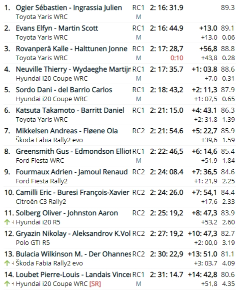 Elfyn Evans’ın 13 saniye önünde son gün olan yarın 4 etaba lider avantajıyla başlayacak. Güne Evans’ın 7.4 saniye ardından ikinci olarak başlayan Ogier, günün 3’ncü rallinin ise 11’nci etabında Evans’tan 1.3 saniye daha yavaş olmasına karşın gün sonunda 13 saniyelik bir avantaj elde etti. Toyota’nın genç pilotu