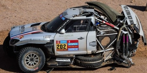 Dakar'da olaysız gün yok. Şimdi de Mini Cooper JCW X-Raid Takımından Chicherit, tümsek ardı çukura çok hızlı girip defalarca takla attı. Kendisi hastanede, Mini'de ise yarışacak hâl kalmadı. Hasar büyük. Aynı takımdan deMevius ve Baumel, Ferreira ile Palmeiro'ya 1 saat 34 saniye fark atarak öndeler. Al Rajhi hırsla lider Lategan'a yaklaşırken, 10 dak. 17 sn. farkı kapatmak niyetindeydi. Gazlarken sağ arka jant hasar aldı. Hesapları bozuldu. Dinlenme arasında, bir Toyota'dan yardım aldı ve jantı yeniledi. Etabı birinci bitiren Saood Variawa, Rajhi'ye bir istepnesini hediye edince, durum düzeldi. Mâlum, Al Attiyah'a bir istepneden 10 dak. ceza kitlemişlerdi... Rajhi tekrar yola düştü... Lategan ile farkı 5 dakikaya düşüren Rajhi, erken rahatlayıp hata yaptı. Kumluk alanda 2.5 dak. kaybetti. Finishde fark 7 dak. 16 sn. idi... Al Attiyah, cumartesini temkinli geçip, pazar günü kumda kendini göstermesi bekleniyor.