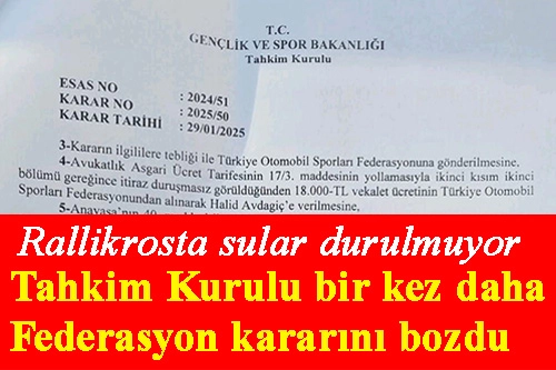 Federasyon bir kez daha tahkimi kaybetti. Şampiyon rallikros sporcusu Halid Avdagiç’in Pendik’teki Avitaş tesislerinde üretilen Control 2 yarış otomobiline daha önce K3’te yarışa izni veren federasyon, son yönetim zamanında bu konudaki kararlarına aykırı bir şekilde aynı otomobile bu kez K5’te yarışma izni verince, Halid Avdagiç konuyu Gençlik Spor Bakanlığı Tahkim Kurulu’na taşıdı. Önceki tahkim başvurularında da federasyon kararları iptal edilmesine karşın, tahkim kararlarını uygulamayan ve kamuya açıklamayan federasyon karşısında direncini koruyan Halid Avdagiç, bu yıl bir kez daha Tahkim’e başvurdu ve yine Tahkim Kurulu, 29 Ocak’ta verdiği 2025/50 sayılı kararında bir kez daha federasyonu hatalı bularak kararını bir kez daha bozdu. Halid Avdagiç’i bir kez daha haklı bulan Tahkim Kurulu vekalet ücretinin de federasyondan alınarak Halid Avdagiç’e verilmesini hükmetti. | 31 Ocak 2025 : 18.50