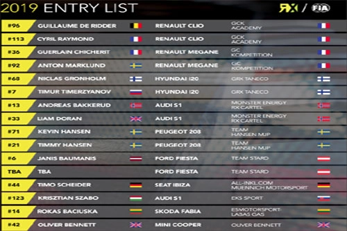Bugün açıklanan 2019 FIA Dünya Rallirallikros Şampiyonası kayıt listesi, şampiyonanın 10 ayağı boyunca rekabetin yoğun olacağını gösterdi. Rakiplerin kalitesi, çok kültürlü karışımı, henüz 5’inci yılında World RX'in gücünü vurguladı. 6 takımda toplam 16 pilot ve 8 farklı otomobil markasını temsil eden dört ferdi kayıt ile World RX’te şampiyonluk için savaşılacak. 11 ülkeden pilotlar şampiyonaya çok uluslu bir lezzet getiriyor. Liste, takımlar ve sürücüler arasında bazı tanıdık isimler içeriyor ve bir dizi genç pilotun da şampiyonaya damgasını vurma şansı sunuyor. Şampiyonluk için güçlü iddialar olması, yeni kurulan Monster Energy RX Cartel takımı için Audi S1'lerde güçlerini birleştiren İngiliz