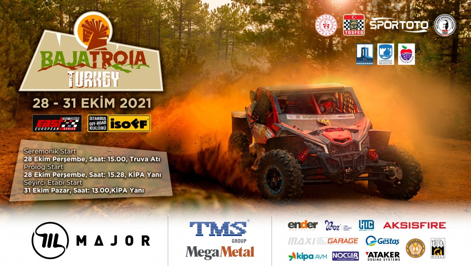 Baja Troia’nın startı yaklaştıkça, yarışa ilgi de kayıtlar da artıyor. Organizatör kulüp İsoff’tan yapılan açıklamaya göre, 4 günlük yarışa 9 İtalyan, 2 Bulgar, 1 Macar ve 1 Polonyalı olmak üzere toplam 48 kayıt ulaştı. Son kayıt tarihi olan 25 Ekim saat 15’e kadar bu sayının artması bekleniyor. Sadece otomobil ve SSV’lere açık olan yarış, Doğu Avrupa Kupası’na puan veriyor. | 17 Ekim 2021 :