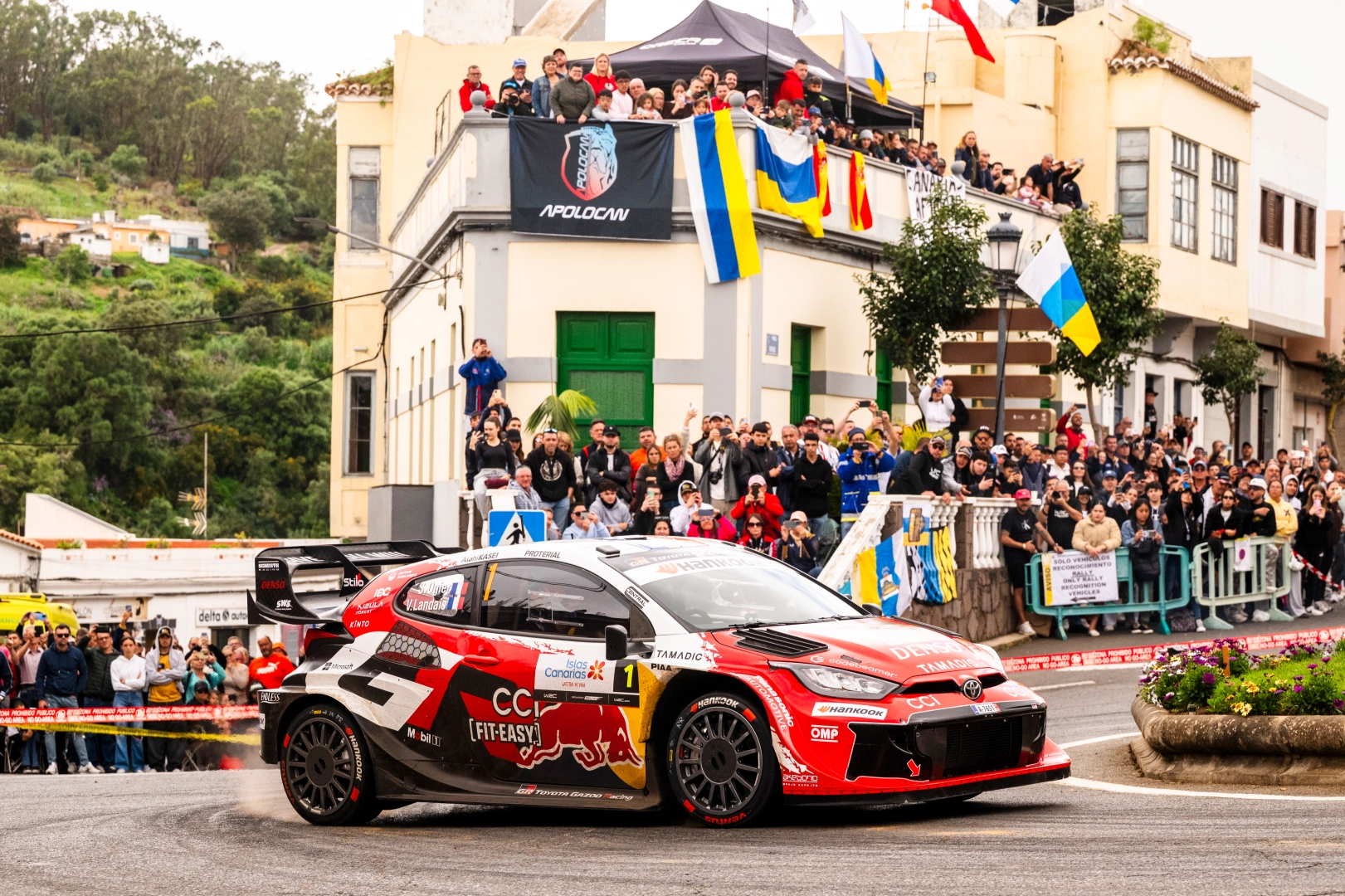 Ogier, Cuma günkü açılış etabında domine ettikten sonra güne 8,9 saniyelik bir farkla başladı, ancak Solberg altı etap boyunca bu avantajı istikrarlı bir şekilde azalttı ve uzun Moya - Gáldar testinin her iki geçişini de kazanarak gergin bir pazar finaline zemin hazırladı. Elfyn Evans, liderden 21,9 saniye geride kalarak geceyi podyumda tamamladı; Pajari ve şampiyonluk lideri Katsuta ise TGR'nin ilk beşi ele geçirmeye devam etmesini sağladı. Yağmur ve ıslak zeminler, özellikle Arucas - Firgas - Teror ve Moya - Gáldar'da, yol tutuş seviyelerinin hızla değiştiği yerlerde, sabah etabını zorlaştırdı. Evans en güçlü başlangıcı yaparak günün ilk iki etabını kazandı ve öndeki mücadeleye yaklaştı. Ardından Solberg, 28.90 km'lik Moya - Gáldar etabında, bariyerle ufak bir temas yaşamasına rağmen Ogier'i sadece 0.1 saniye farkla geçerek karşılık verdi. Ogier, yağmurun şiddetlenmesiyle son kilometrelerin kayganlaştığını kabul etti ve öğlen saatlerinde liderliği 5.3 saniyeye düştü.