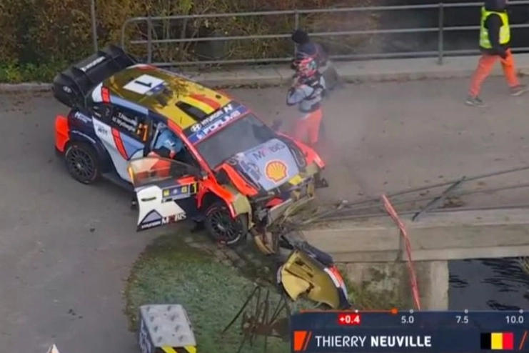 Neuville, kazadan önceki gecenin son özel etabında en hızlı zamanı elde ederek genel klasmanda yedinci sırada yer alıyordu. 12,37 kilometrelik Beyond Borders özel etabının yaklaşık dört kilometresinde, Neuville dar sol virajda fren yaparken çok fazla sağa kaydı ve önce bir saman balyasına çarptı, ardından köprü korkuluğunun ucuna sert bir şekilde çarptı. Aracında ciddi önden hasar meydana geldi ve yarış dışı kaldı. Özel etap iptal edildi ve dereceler sıfırlandı. Belçikalı sürücü ve kopilotu Wydaeghe, i20 Evı’dan sorunsuz çıktılar ve tedbir amaçlı sağlık kontrolünden geçtiler. Neuville, olaydan hemen sonra şu yorumu yaptı: "Notlarımızda da görüldüğü gibi, tempomuz çok yüksekti. Etap orada çok dardı. Dönüş yaptım ve araç beklenenden daha dar olan köprü girişinden önce önden savruldu. O zamana kadar tepki vermek için çok geçti. Çarpışma oldukça şiddetliydi. İkimiz de acı çekiyoruz ve şimdi tıbbi muayeneden geçeceğiz."