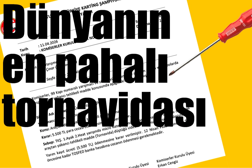 Karar, aynen şu şekilde; “Komiserler, 99 Kapı numaralı yarışmacı ve sürücüyü dinlemiş ve araçtan düşen ve videolarda tespit edilen yabancı tehlikeli madde konusunda aşağıdaki karara varmıştır. Sürücü: Çınar Özgenoğlu-99, yarışmacı: Harun Özgenoğlu / Konu: Araçtan düşen yabancı tehlikeli parça (tornavida) Karar: 5.500 TL para cezası ödenmesine karar verilmiştir. Sebep: TKŞ. 1.Ayak 2.Heat yarışında micro kategorisindeki yarış esnasında 99 kapı numaralı araçtan yabancı tehlikeli madde (Tornavida) düştüğü videolar yardımı ile tespit edilmiştir. Yarım kayıt ücreti (5.500 TL) ödenmesine karar verilmiştir. 12 Nisan Pazar günü İlk Start öncesine kadar TOSFED banka hesabına cezanın ödenmesi gerekmektedir.”
