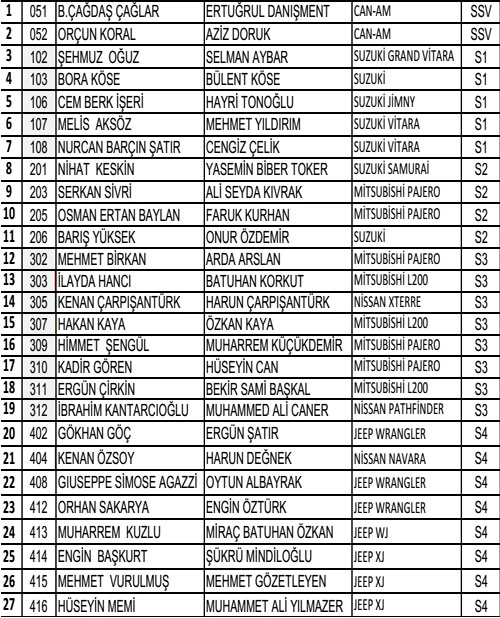 Bu hafta sonu (19-20 Ekim) Sakarya'da yapılacak olan Türkiye Offroad Şampiyonası 4'ncü ayak yarışı için dört kategoride toplam