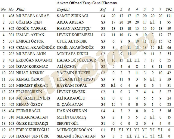(Puan tablosu Tosfed'in offroad sonuç sitesinden alınmıştır)