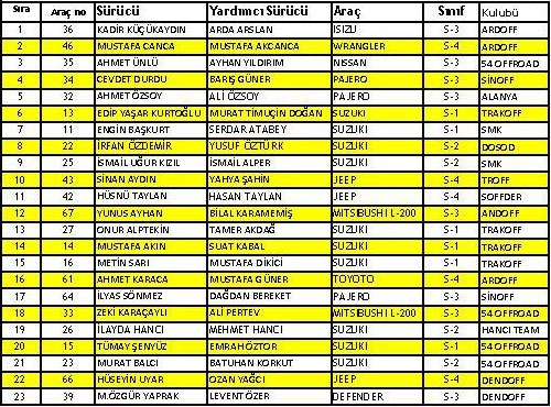 Sinoplu Bülent Cevdet Durdu, evinde de iddialı[/caption] Mayıs’ın son hafta sonu Sinop’ta yapılacak olan sezonun üçüncü offroad yarışına 23 kayıt geldi. Sinop’un Ak Liman bölgesinden verilecek startla başlayacak ve iki gün sürecek olan yarışta, offroad araçları ilk gün Hamsilos’taki orman, ikinci gün ise hava limanı dibinde, deniz kenarındaki seyirci etabında mücadele edecekler.