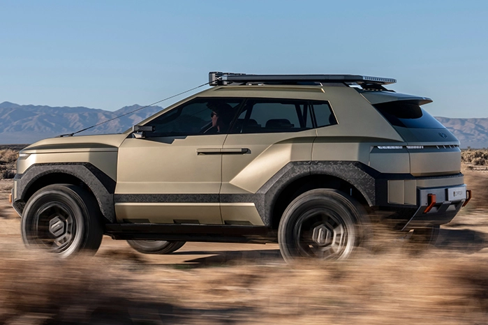 Hyundai’nin Art of Steel tasarım dili, çeliğin gücünü ve esnekliğini heykelsi bir estetikle birleştiriyor. Akıcı hacimler ve keskin çizgiler, güçlü ama zamansız bir duruş ortaya koyarken, Crater Concept’in dış yüzeyinde bu yaklaşım net bir şekilde hissediliyor. Crater Concept’in dış tasarımı; keskin gövde hatları, güçlü alt koruma plakaları, geniş çamurluk yapısı ve yüksek yaklaşma-açılma açılarıyla zorlu arazi koşullarına hazır bir form sunuyor. 18 inç’lik altıgen formdaki jantlar ve 33 inç özel off-road lastikleri hem görsel güç hem de performans avantajı sağlıyor. Crater Concept’in iç tasarımı, teknolojiye meraklı ve maceracı kullanıcılar için fonksiyon odaklı olarak kurgulandı.
