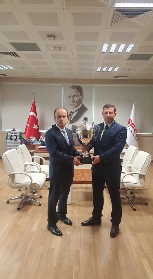 Ümit Ülkü, önceki gün ziyaret ettiği Genel Müdür Mehmet Baykan’a verdi ve aynı zamanda Tosfed genel kurul delegesi olan Mehmet Baykan’dan desteklerini istedi. Kupayı takdim keçtirdiği fotoğrafları facebook hesabından paylaşan