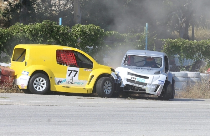V1'de günün ilk yarışında İzmirli Ubeyde Saygılı henüz ikinci turda lastiği fırladığı için erken abandone oldu ama asıl şok genç yarışçıyı ikinci yarışta beklemekteydi. Sondan bir önceki turda rakibi ile yaşadığı temasta hatalı bulunarak hakkında yarıştan ihraç kararı alınan Ubeyde, yaşaadığı bu temas sırasında aldığı sert darbe sırasında omuzu çıkınca günün sonunda sağlık ekibinden bandaj desteği almak zorunda kaldı. V1'in ilk hafta yarışlarının diğer şanssız bir ismi tv oyuncusu Ümit Erdim idi ve ilk yarışta lastiği kopan sempatik yarışçı günün ikinci yarışında da henüz starttan 100 metre sonra rakibi ile bir temas yaşadı ve yarış dışı kaldı. Günün ikinci yarışı bu kaza üzerine kırmızı bayrakla durduruldu ve pist temizlendikten sonra yeniden start verilerek gün tamamlandı. Aydın Hoşgör | Ralli Ajansı, İzmir [gallery ids="37929,37928,37927"]