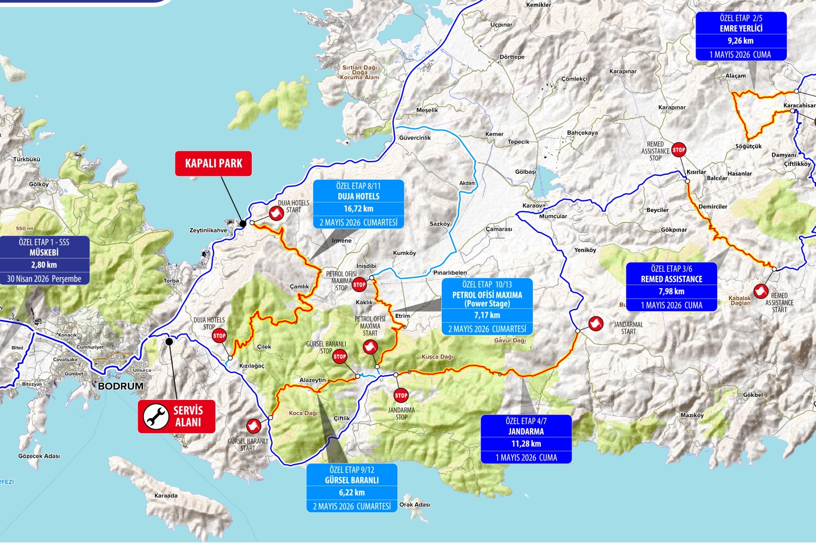 Türkiye Ralli Şampiyonası'nda sezonun ikinci ayağı Bodrum Rallisi'nin gün ve etap haritaları yayınlandı.