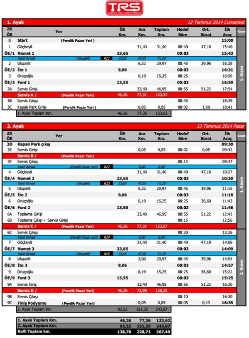 C : NAMET (Midpoint noktası) ; Göçbeyli köyünden NAMET etabının startına ulaşıldığında, sağa asfalttan devam edilerek Beyza Su İşletmesini geçtikten hemen sonra, soldaki toprak yolun girişinde Midpoint seyirci noktasına ulaşabilirsiniz. Bu nokta Ford (Oruçoğlu) Etabının finişine de çok yakın. Bu noktada yarış otomobillerini seyrettikten sonra Ford (Oruçoğlu) etabının finişi de seyredilebilir.