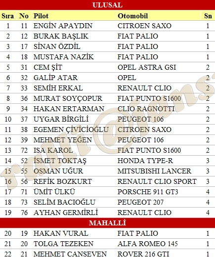 Ege Otomobil Sporları Kulübü (Eosk) tarafından Kemalpaşa'da düzenlenecek olan sezonun üçüncü tırmanma yarışı için 22 kayıt yaptırıldı. 19 Ulusal yarışçı arasında bazıları aynı zamanda mahalli klasman için de mücadele edecek olduğundan, mahalli listede 3 ismin gözüküyor. Pazar günü öğlen startı verilecek olan yarışta en çok katılım, İzmirli Ülkü Motorsport adına yaptırıldı. Takım, İzmir'de tam 7 pilot tarafından temsil edilecek.