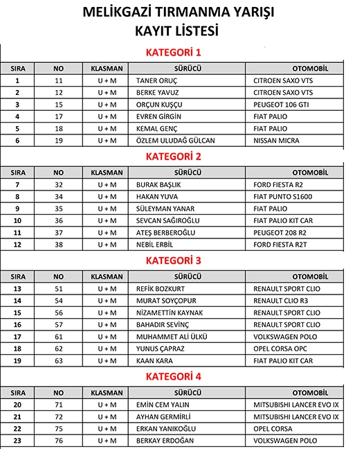 K4'ün şampiyonu Emin Cem Yalın Melikgazi'nin de favorisi[/caption] Tırmanma şampiyonasında sezonun üçüncü ayağı olarak Eskişehir kulübü tarafından Kayseri'nin Melikgazi ilçesinde yapılacak olan bu hafta sonu yapılacak olan yarışa dört kategoride toplam 23 kayıt ulaştı. | 25 Ağustos 2021 :