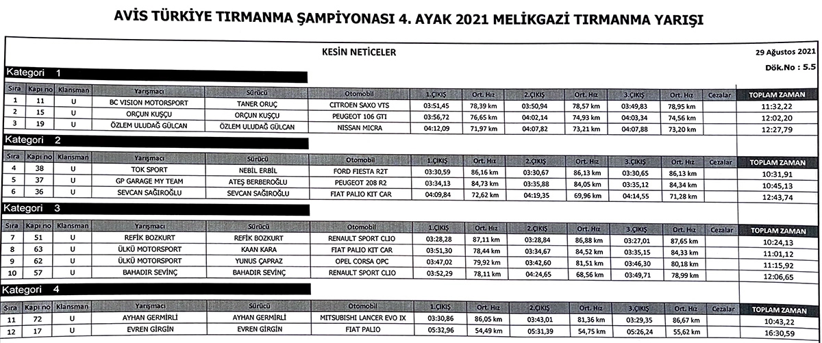Ayhan Germirli 10.43.22 ile 3’ncü oldular. Ulusal klasmanda 12 ekibin finiş gördüğü yarışınta K1’de Taner Oruç, K2’de Nebil Erbil, K3’te Refik Bozkurt, K4’te Ayhan Germirli sınıf 1’ncilik kupaları ile evlerine döndüler. | 29 Ağustos 2021 :
