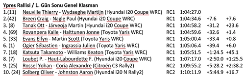 Ypres’de en hızlı zaman ev sahibinden geldi. 9.81 km’lik Langemark etabında Hyundai i20 Coupe WRC’si ile Belçikalı yıldız Thierry Neuville, üçüncü hakkında 4.22.5 ile tamamlayarak shakedown’ın en hızlı ismi oldu. Bir röportajında ülkesindeki bu önemli ralliyi kazanmayı çok istediğini dile getiren Neuville’nin ardından takım arkadaşı Ott Tanak yine üçüncü hakkında +8 salise farkla 2’nci olarak izledi. Son şampiyon ve şampiyona lideri Sebastien Ogier ise, +1.3 saniye farkla yine üçüncü hakkında en iyi 3’nü zamanı kaydetti. Ypres’ın shakedown etabından en hızlı zamanların hep üçüncü geçişlerde kaydedilmesi dikkat çekti. | 13 Ağustos 2021 : 12.00