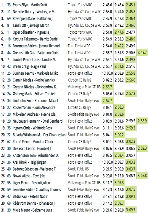 Toyota Gazoo Racing için ilk asfalt rallisine katılan Evans, kuru ve güneşli 4,60 km Medvedgrad etabındaki shakedown’da Neuville'nin Hyundai i20'sinin 7 salise önünde en iyi zamanı kaydetti. Toyota’nın şampiyona lideri genç pilotu Rovanpera, Galli takım arkadaşının 1.3 saniye ardından shakedown’da en iyi 3’ncü zamanı yaptı. WRC’de sezonun üçüncü ayağı olan Hırvatistan, ülkede yapılan ilk WRC resmi yarışı. Evans “bazı farklı ayarları denedik, testte yaptığımız işi onayladık” dedi. Araba kurulumu, aşınmış asfalt üzerindeki dar ve kıvrımlı şeritleri pürüzsüz bir yüzey üzerinde hızlı açık yollarla harmanlayan aşamalarla önemli bir ralli öncesi konuşma noktası oldu. Evans, “toprak setuplı bir arabaya ihtiyacınız olan bölümler var çünkü çok kirli. Kurulum kesinlikle bir uzlaşma ve oldukça ilerici olan ve tutuşu hissetmenizi sağlayan bir arabaya ihtiyaç hissettiriyor” dedi. Rovanpera, shakedown ile ilk mücadele eden ve ilk geçişte en hızlı olanıydı. Evans ise etabın ikinci geçilişinde zirveye yerleşti. Üçüncü ve son geçişlerde ise geçerli zamanını kaydetti. Ott Tanak, Evans'ın 1.5 saniye farkla dördüncü olurken, son şampiyon Sébastien Ogier beşinci zamanda kaldı. Katsuta, Evans'ın zamanından 3,8 saniye farkla ilk altıda yer alan dördüncü Toyota pilotu oldu. Adrien Fourmaux, M-Sport Ford Fiesta ile takım arkadaşı Gus Greensmith'den yarım saniye farkla en hızlı yedinci sırada yer alarak WRC’de iyi bir başlangıç yaptı. | 22 Nisan 2021 : 22.15