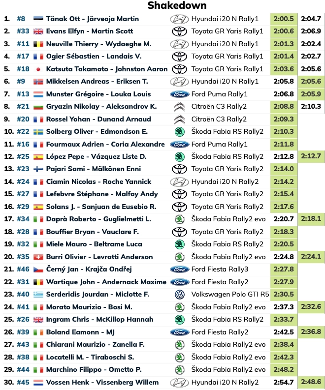 2024 WRC’nin ilk ayağı Rallye Monte Carlo’da bugün shake down etabı ile resmi program start aldı. Hyundai i20N RAlly 1 ile Ott Tanak, GR Yaris Rally 1’li Elfyn Evans’ın 6 salise önünde shakedown etabının en hızlı ismi oldu. Neuville ve Ogier’i shakedown etabında sadece 1 salise ayırabilirken Katsuta en iyi 5’nci zamanla dikkat çekti. Monte Carlo Rallisi bu akşam start alıyor. Parkurdaki rekabet ise yarın sabah erken saatte başlayacak | 24 Ocak 2024 : 19.55
