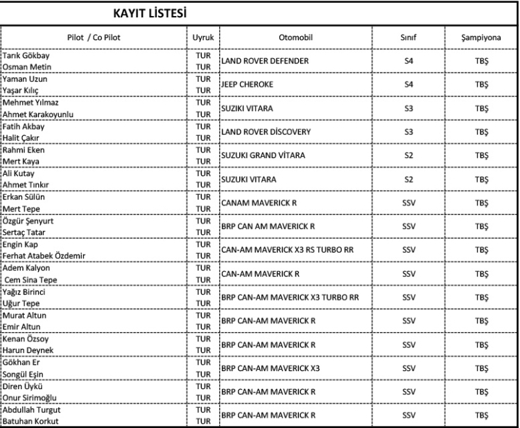 Hafta sonu Kahramanmaraş'ta yapılacak olan sezonun ilk baja yarışında 10 SSV olmak üzere toplam 16 ekip kayıt yaptırdı.