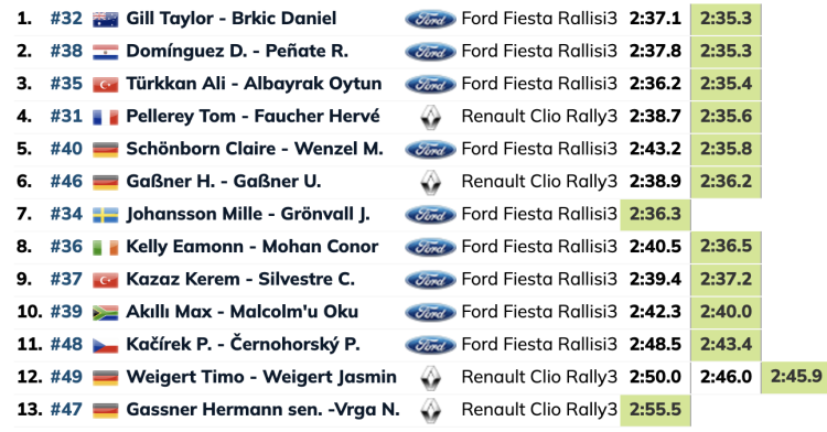 Hyundai takımının birinci ilotu olan Neuville, i20Raly 1 ile shakedown etabında üçüncü denemesinde 2.15.5 ile en iyi zamanı kaydetti. Efsane şampiyon Ogier’ın 1,1 saniye farkla 2’nci en iyi zamanda tamamladığı shakedown etabında İrlandalı Evans 1 salise farkla en iyi üçüncü amana imzasını attı. CER’de bugün yapılan shakedown etabında WRC3’de mücadele edecek ili Türk genç pilotu da yer aldı. WRC3 lideri Avustralyalı Taylor Gill ve Paraguay’lı Dominguez’in 2.35.3 ile aynı en iyi zamanlarına karşın, Ali Türkkan-Oytun Albayrak, 1 salise farkla shakedown’de 2’nci zamanı kaydederken, 1.9 saniye farkla da Kerem Kazaz-Corentin Silvestre 9’ncu zamanda kaldı. Almanya, Avusturya ve Çekoslavakya’daki özel etaplarda yapılacak olan Merkez Avrupa Rallisi’nde bugünkü seremonik start sonrasında ilk özel etap geçilecek, rallide rekabet ağırlıklı olarak yarın ve cumartesi günkü etaplarda yaşandıktan sonra pazar günü akşamüstü finiş görülecek.
