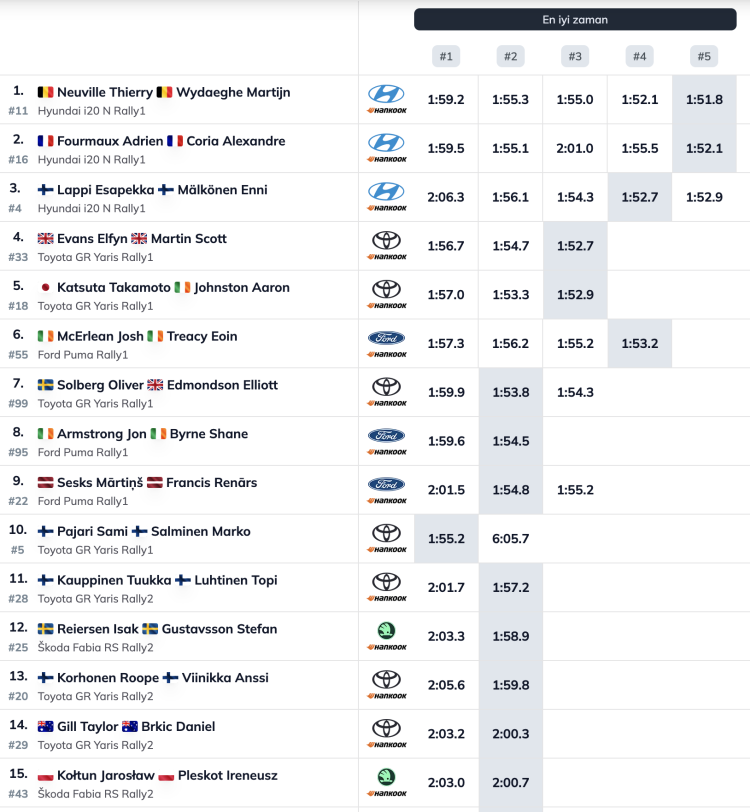 Şampiyonanın lideri Oliver Solberg, ilk geçişinde dramatik anlar yaşadı. İsveçli sürücü, bir kar yığınına çarptı. Solberg, “Gerçekten çok kaygandı. Her yer karla kaplıydı. Bir virajı kaçırdım. Kendi evinizdeki ralliye başlamak harika bir duygu… ama kolay olmayacak” diye konuştu. Pajari 10’ncu zamanı yaparken, arkalarında ise durum daha karmaşıktı. Sesks startta Puma Rally1 aracını stop ettirdi ancak takım arkadaşı Armstrong'un arkasında 9’nculukta kaldı. Ralli bu akşam yerel saat 19:05'te Umea'daki SS1 etabı ile resmen başlıyor.