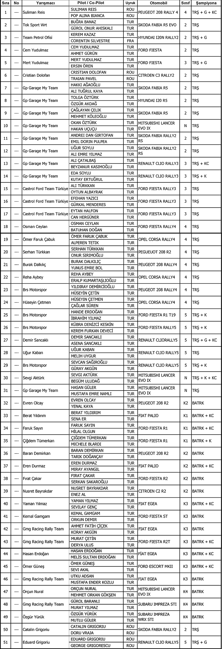 İstanbul Rallisi için 52 kayıt