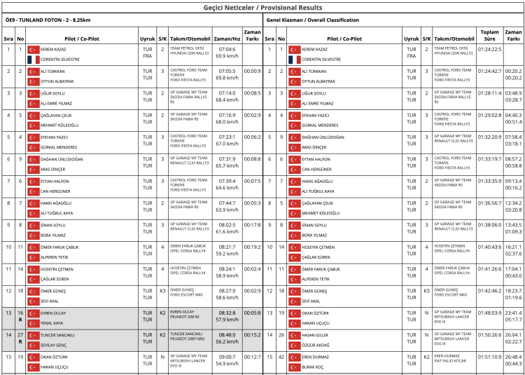Güncelleme; AliTürkkan'ın son etap zamanı komiserler tarafından 07.07.5 olarak tabloya işlendikten sonra geçici klasmanda Kerem'in ardından 20.2 saniye farkla 2'nciliğe yerleştirildi ve Kerem'in zaferi resmiyet kazandı. Diğer taraftan, yayınlanan son bültende de geçici sonuçların yayını için saat 19 olarak ilan edildi.