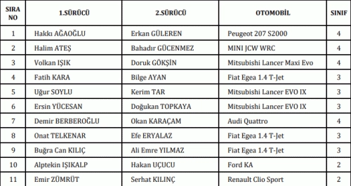 Federasyonun düzenlediği 2020 ulusal takvim adayı Sarıkamış Rallisi'ne 11 kayıt ulaştı. Hafta sonu Kars'ın Sarıkamış ilçesinde karla kaplı etaplarda yapılacak olan Sarıkamış Rallisi'nde eski şampiyon rallici Volkan Işık ve eski başkanlardan Demir Berberoğlu'nun yanı sıra Fatih Kara, Uğur Soylu ve Hakkı Ağaoğlu isimleri dikkat çekiyor. Ralli cumartesi akşamüstü ilçe kaymakamlığı önünden verilecek startla başlayacak. | 7 Mart 2019 : 23.23