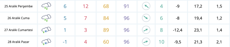 Meteoroloji tahminlerine göre, yarışın strartının verileceği ve sıralama etabının yapılacağı Cuma günü Düzce’de yağmur etkili olacak. Yarışın ilk günü olan cumartesi ise hava hem iyice soğuyacak ve gece sıcaklık 1 dereceye kadar düşecek. Kar yağışının görüleceği gün boyu ise 3 derece olması tahmin edilen hava sıcaklığı pazar günü gündüz 1 derece yükselirken, gece -1’i görecek ve kar yağışı varlığını koruyacak.