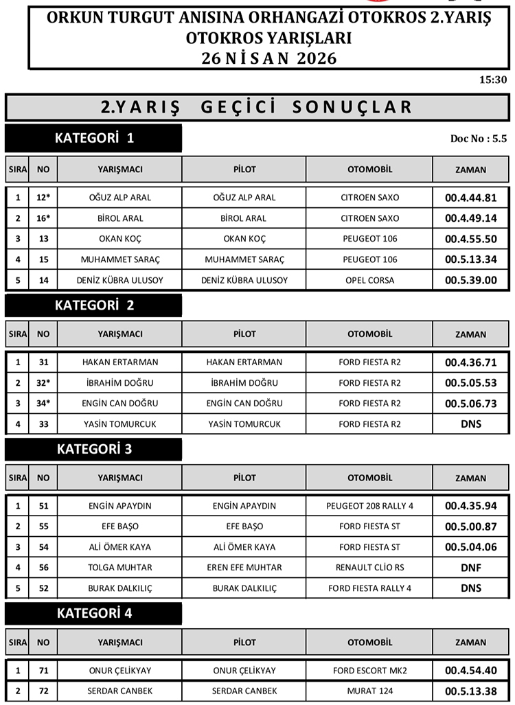 Hafta sonu Orhangazi Otokros Pisti’nde yapılan mahalli yarışlarında ikinci gün (Pazar) zirve değişmedi.